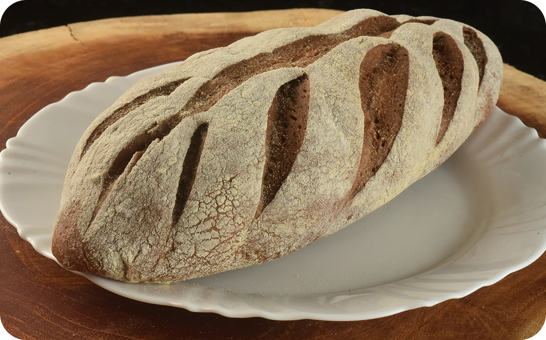 Pão com sabor levemente adocicado, textura macia e coloração escura, ideal como acompanhamento de carnes defumadas, assadas, vinho e cerveja. 290g aprox.
